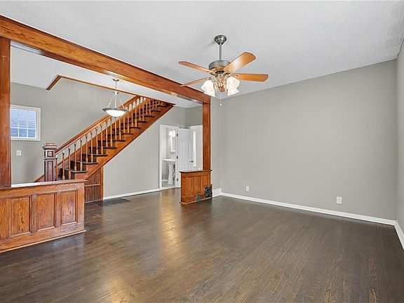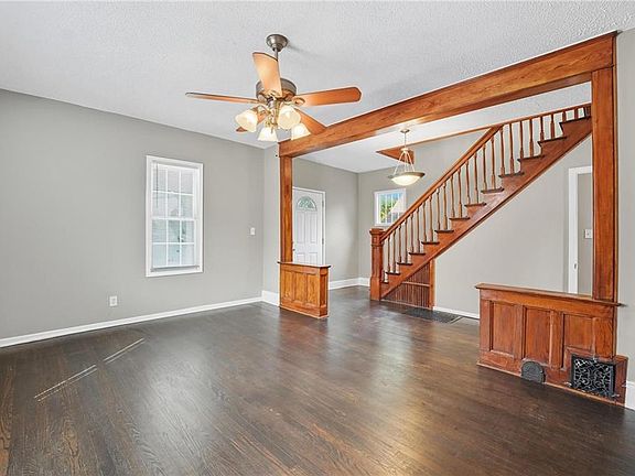 This move-in ready home blends timeless charm with fresh updates throughout. The main floor features a formal living room, dining room, and an additional room that works beautifully as a sitting room, hearth room, or cozy lounge space. The kitchen shines with crisp white cabinetry, plenty of counter space, and a seamless flow to the dining area, plus a convenient half bath nearby. Fresh paint and a roof that’s only one year old give peace of mind. Two staircases, one at the front and one at the back of the home, add unique character. Upstairs, you’ll find four bedrooms, a full bath, and a bonus room that’s perfect for a craft space, flex room, or reading nook. Stairs lead to the attic for great storage or future potential. Outside, enjoy relaxing on the large covered front porch or entertaining on the spacious back porch. Sitting on a corner lot with off-street parking, this home is ready for its next chapter.