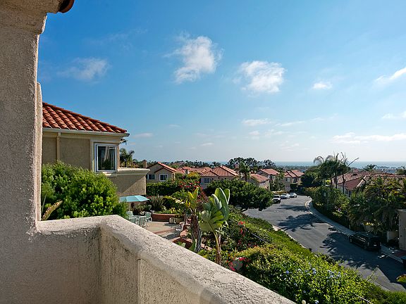 Gorgeous Ocean View home located in gated community of Antigua-Monarch Beach. This three bedrooms two and half baths home has newer paint and carpet as well as stainless steel appliances, window treatments (in place less than 2 years ago). As you approach the double front doors you are greeted by beautiful stone hardscape that wraps around the inviting backyard with mature trees and beautiful landscaping, just perfect for entertaining. Enjoy 180 degree breathtaking view of sunsets, city and mountains from this house. Vaulted ceilings in Family Room, with a cozy fireplace. Lots of natural lights every where, open floor plan, ocean breezes, panoramic ocean and city views. Master bedroom with private balcony to enjoy fantastic views. Master bathroom has double sinks, soaking tub, separate shower and large walking closet. Two secondary bedrooms upstairs are spacious, beautiful secondary bathroom. Guest bathroom downstairs. Two-car garage with plenty of storage space. Walking distance to Salt Creek Beach, Monarch Beach Golf Links, Monarch Beach Resort, and Ritz Carlton, Ocean Ranch. Great schools! Itas all about the view!