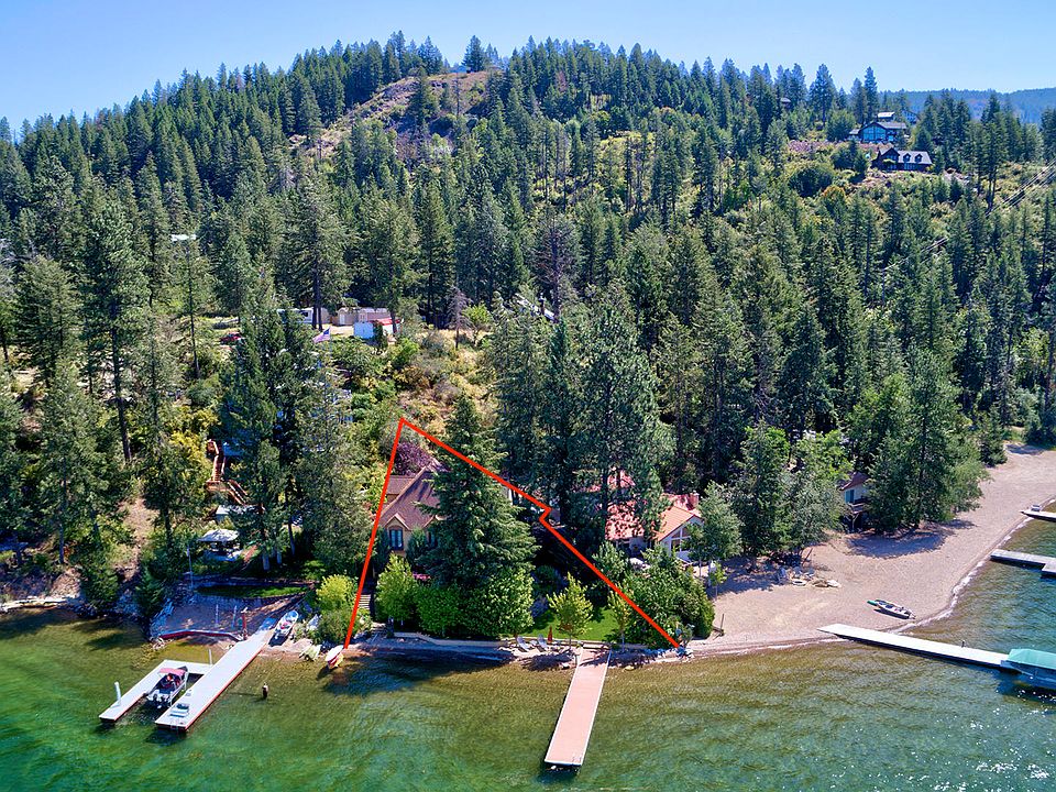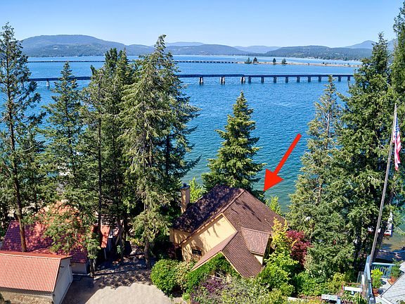 Charming custom built 4 bed/3 bath Mediterranean style home nestled on the shore of Lake Pend Oreille, located directly across the lake from Sandpoint. Spacious living room with a cozy fireplace, built in tv hutch with cabinets, large windows and French doors allowing access to outdoors. Gourmet chef's kitchen with stainless steel appliances, nice pantry, large breakfast bar/island, and granite countertops. Each bedroom throughout the house is spacious with its own private balcony with amazing lake views. Beautiful tile work throughout the whole house including the bathrooms. This home sits on a very well maintained, gently sloping lot and that has amazing landscaping. Large patio that is great for relaxing or BBQ's with a built in bbq with counter space.