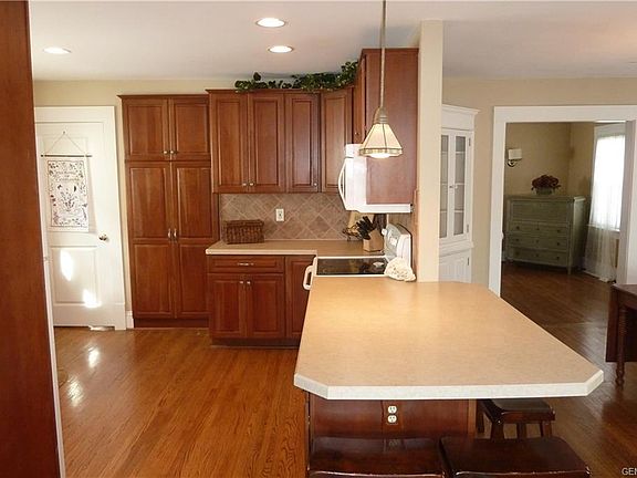 Beautiful open floor plan colonial upgraded throughout. 2 Story addition in 2006 added a beautiful open cherry kitchen with breakfast bar overlooking an open fireplaced family room on the first floor and a modern master suite on the second floor. First floor also has a large formal dining room and formal living room. Second floor has 3 additional bedrooms besides the master suite. All rooms are spacious and remodeled. Second floor laundry is just another great feature. Full walk up attic for extra storage. Basement level is partially finished with a powder room for convenience. Newer roof, vinyl siding, furnace, a/c, water heater and vinyl windows add to the upgrade list. Oversized front porch for relaxing and a paver patio in the rear surrounded by gardens. Yard backs to undeveloped land.