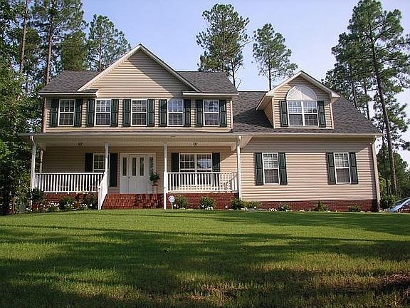 New For Sale. Corner lot 2900 sq ft home with storage! You will love this 5 BR house with separate study. Large 5th bedroom could easily serve as a separate living/bonus area. Additional 300+ sq ft floored walk-in storage closets accessed via large bedroom/bonus room! Cherry cabinet kitchen with large breakfast bar and S/S refrigerator and microwave appliances. Matching cherry cabinets in laundry room. Bright sunroom for your morning coffee. Trey ceilings and crown molding in Master BR, sunroom, and formal dining room. Cherry hardwood floors in living and dining rooms. New carpet installed throughout in 2018. New HVAC 2018. Tile in kitchen and all bathrooms. Covered front porch in front and rear, with rear deck. Interior freshly painted and rear deck stained 2021. Dual HVAC systems. Crawlspace sealed and dehumidifier installed 2020. Wired for alarm system. Hunter sprinkler system. All in Carolina Lakes with access to lake beach, clubhouse, pool, and more!