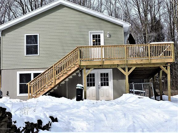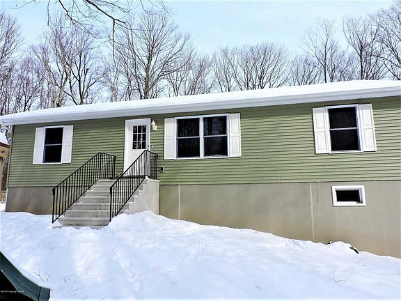 BEAUTIFUL 2018 raised ranch with 100% privacy offers: fenced lot, large porch for the family entertainment, 3 BR, 2 Baths, LR, DR, pre finished basement ( you will finish for your own needs). It is walk in basement, plumbed for bath installment. Great for multi generational families. Two large sheds. Deck is large enough to park vehicles underneath .It is really close to all Pocono attractions