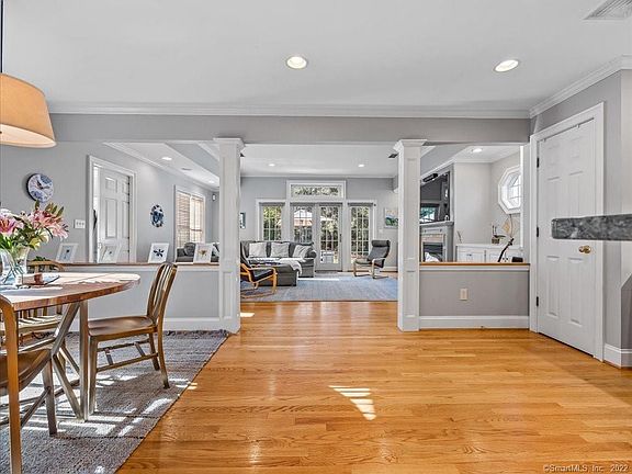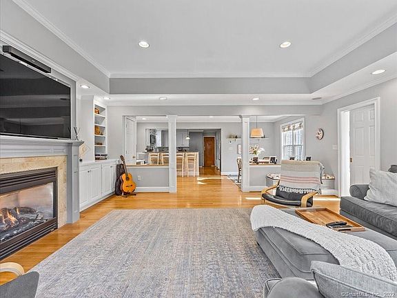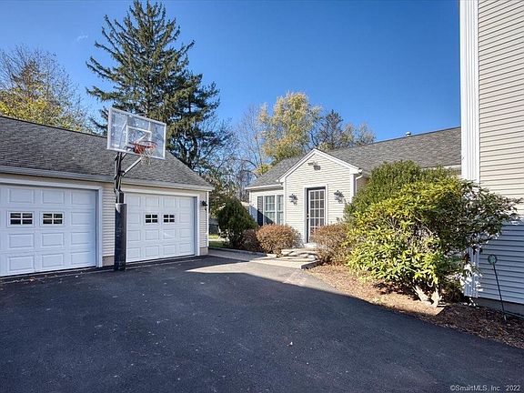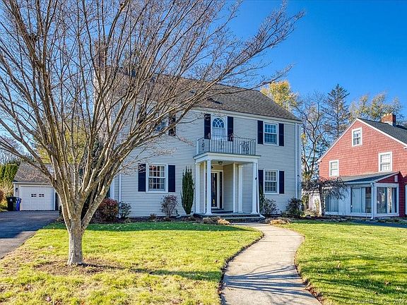 Classic Colonial Charm in sought after Webster Hill neighborhood! This 5 Bedroom, 2 and a Half Bath Expanded Colonial combines vintage craftsmanship detailing with high end modern updates. Light, bright kitchen w/ granite counter, white marble backsplash, white cabinets, SS appliances, breakfast bar and Eat In nook. Kitchen opens to sun-drenched Great Room for excellent entertaining space w/ gas fireplace & built in bookshelves. French doors lead to the picturesque backyard patio and manicured level lawn punctuated w/ border garden areas. Beyond the kitchen, a new butler's door opens to Formal Dining Room with 2 charming corner hutch built ins and arched doorways to warm and inviting Formal Living Room with a second wood burning fireplace & additional built-in book shelves. Half bath on first floor and hardwood floors throughout. Second floor hardwood flooring in all 4 ample bedrooms including Primary Bedroom w/ double closets & En Suite Bath. 3rd floor has 5th bedroom with newer carpet, ideal for your private home office. Finished basement with newer carpet perfect as a den or recreation space. Basement laundry room & new workout room beyond. Two heating systems with newer furnace. Central Air. Generous storage on the unfinished side of 3rd floor attic space. Chimney rebuilt 2021. Detached two car garage, flat, level yard, stone patio and brand new driveway 2021. Come see! Professional photos will be added this week. Showings begin Sunday 11/20