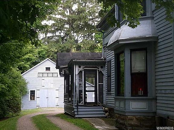 Take a walk back in time when you view this 1850 Greek Revival home in the historic district. Rare chestnut woodwork on the staircase,foyer,many doors and door casings. Enjoy the living room,parlor, and library which could become first floor bedroom. Hardwood floors throughout house. Spacious dining room. Country kitchen boasts large porcelain sink and built-in cupboards.Three bedrooms upstairs with original wide plank flooring and full bath.Two- story carraige house with workshop and rustic upstairs apartment. Big private backyard. With some TLC return this house to it's original grandeur!