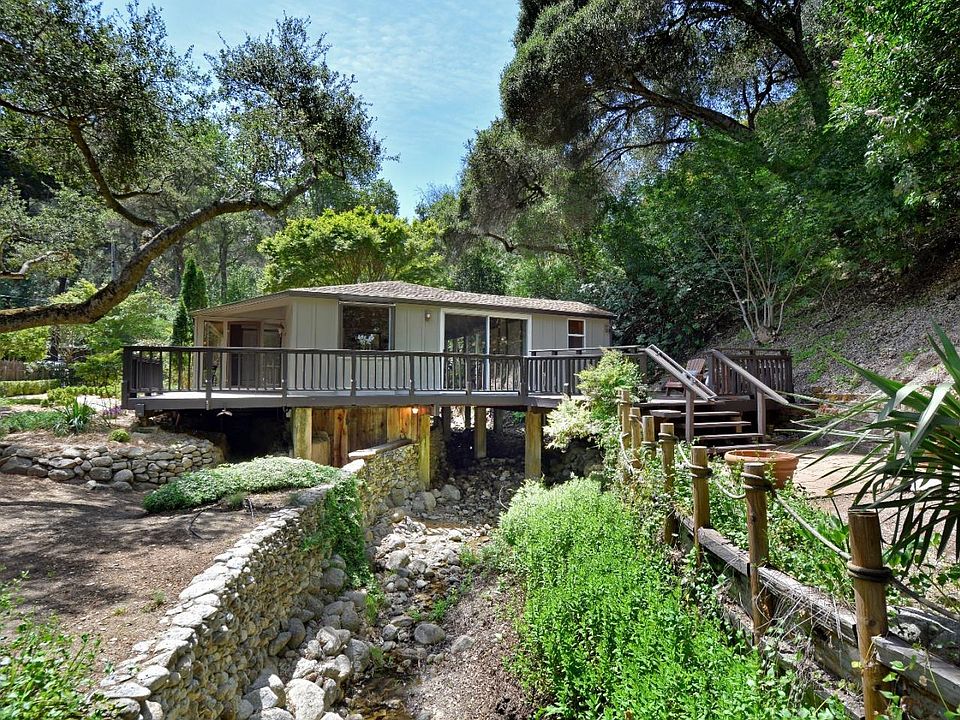 The perfect Carmel Valley getaway . . . whether you are using it just on the weekends or as a full-time residence! Nestling besides and over a seasonal babbling brook near the Village in Carmel Valley this two-bedroom, one-bath beauty stands out from the rest. Sit in front of your fireplace in the great room with recently refinished hardwood floors enjoying the sights and sounds of nature around you. An exquisitely remodeled kitchen and bathroom highlight the interior of this darling cottage. Perched in a park-like setting you will enjoy the multiple sitting areas year-round. Extensive decking out over the brook gives you peace and quiet in a serene setting, while the landscaping affords you easy care with beautiful outlooks from everywhere on the property. Meticulously maintained this turn-key home has been freshly painted, with a brand-new 95% efficient furnace and very clean inspections, giving you the ability to move right in and start enjoying your personal oasis!