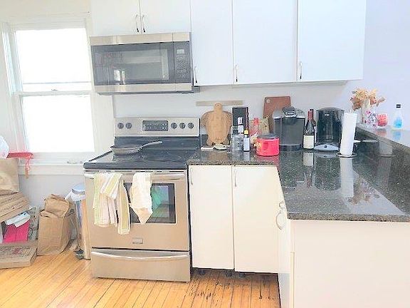 Extra charming 3 room unit in a historical home on a quaint street. Nice hardwood floors & high ceilings. Cool eat-in kitchen w/vaulted ceilings & skylights, dishwasher & disposal. This unit has a SWEET DECK and Central Air! Laundry is free in the basement. (Reference #136049)