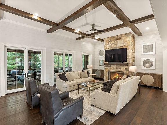Inside, the open floor plan invites connection. The great room, anchored by a stone fireplace, flows easily into the dining area and bright, welcoming kitchen with abundant counter space. It’s the perfect backdrop for everything from intimate dinners to lively gatherings with friends.