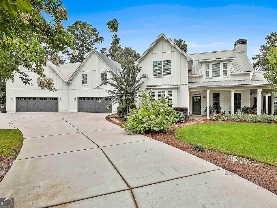 Welcome to 49 Standing Rock Rd, just a quick golf cart ride to Historic downtown Senoia. This is a truely exceptional craftsman home offering timeless charm, thoughtful upgrades and incredible living space inside and out. A covered front and side porch sets the tone as you step into an inviting open floor plan filled with warmth and character. The spacious family room features real Heart Pine hardwood floors throughout the main, shiplap paneling, a cozy stone fireplace and plantation shutters throughout. The family room flows seemlessly into a large separate dining room with views of the gorgeous brick patio, perfect for entertaining. The newly updated chefs kitchen is a showstopper with brand new quartz countertops, tons of cabinets, stainless appliances, large pantry and a wall of custom cabinets. Custom lighting and hardwood floors elevate the style throughout the main. A hallway leads to the beautifully updated owners suite on the main floor, complete with custom paneling and new paint and walk in closet. The spa like master bath features brick flooring, double vanities, soaking tub and a stunning walk in tile shower. Also on the main are a guest room, and home office and a half bath. Upstairs you'll find three more bedrooms with large closets and a loft area. Updated full bathroom. The large laundry mudroom on the main leads out to the incredible 5 car garage through the covered breezeway. The garage has a lift and tons of storage. A full guest suite is above the garage. This suite includes a sprawling game room, full bedroom and full bath, dining area. Perfect space for visitors or multi-generational living space. The yard is professionally landscaped front and back. Enjoy outdoor living on the beautiful brick patio overlooking the private fenced in back yard which features a separate play area and play house. Don't miss the opportunity to make this remarkable property your own.