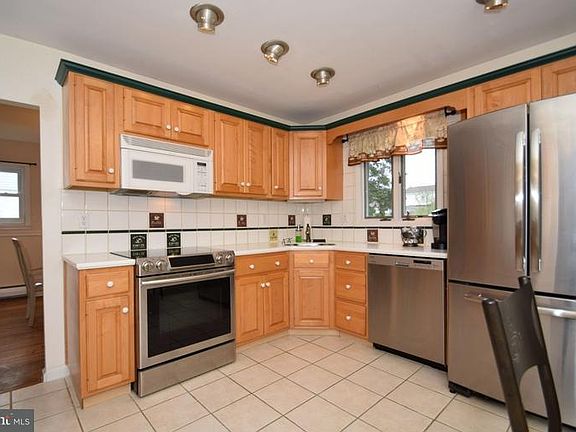 Lovingly maintained and improved 4 BR 2.5 bath split level home situated on large lot framed in mature pine trees. Special features include a refurbished eat-in kitchen with maple cabinetry w/crown molding, solid surface counter tops, CT back splash w/accent tiles, under mount SS sink w/2 soap dispensers, 3 yr Samsung SS range, built-in microwave, SS dishwasher & side by side SS refrigerator (both ~ 2 years old), BB tile floor, recessed lighting and outside entrance to the rear yard. Huge formal LR w/hardwood flooring, full wall stone fireplace w/pellet stove, ceiling fan & bright picture window. Formal DR has hardwood floors, upgraded lighting, chair rail and twin window overlooking the serene rear yard. Spacious family room w/CF, bead board accents, Berber style carpeting and Pella sliding glass doors that lead to the 30' covered rear patio; perfect for family fun or for entertaining larger gatherings. There is also a welcoming foyer with newer front door and flooring, refurbished power room with upgraded vanity, double coat closet and entrance to the garage. Upstairs is highlighted by a large master BR w/double closet, CF and private CT bath. Three additional good sized bedrooms all with ceiling fans, ample closets and pretty views. A full ceramic tile hall bath completes this level. Finished basement has new carpeting, staircase and recessed lighting. This home shows like a sample with recent neutral decor, upgraded mill work & 6 panel doors. Additional features include replacement windows, full basement waterproofing system, H2O softener, ~ 5 year roof, gorgeous rear lot with in-ground pool, 1 car garage w/extra depth, replacement door and electronic opener, storage shed plus storage area in the basement. SF includes finished basement. Put this on your MUST SEE list!