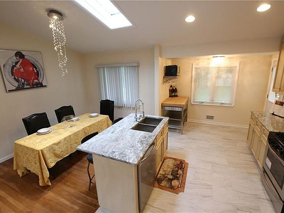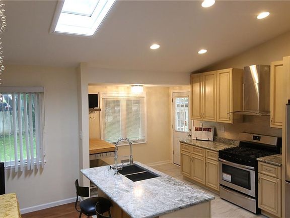 Custom expanded superbly spacious split level unlike any other on beautiful tree lined street. Completely remodeled. Open floor plan, brand new custom chefs kitchen with island, exotic granite counter tops and Stainless Steel appliances. New bathrooms with granite, master suite with full bath, hardwood floor throughout, fireplace, recessed lighting, skylights, finished basement, new furnace and water heater, new 2 car driveway, vinyl siding, custom details throughout! Minutes away, shopping, schools and the shore.