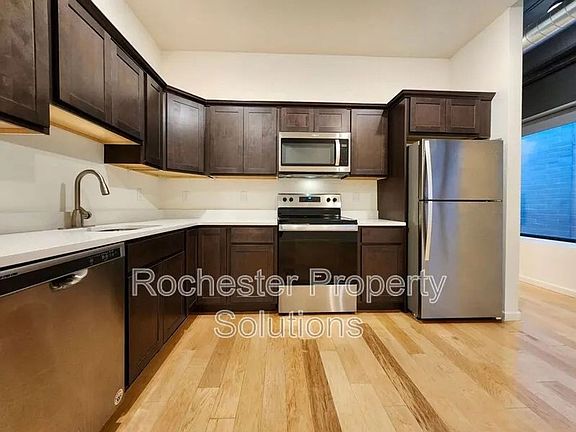 Beautifully updated industrial-style unit in the heart of Downtown Rochester! This modern space features sleek finishes throughout, including stainless steel appliances and the convenience of an in-unit washer and dryer. Enjoy city living at its best with gyms, restaurants, entertainment, and top attractions just steps from your door. Move-In Specials Available! $60 monthly parking credit $150 move-in credit security deposit Perfect for those seeking style, comfort, and an unbeatable downtown location. Schedule your tour today and take advantage of these limited-time offers! Conditions apply.