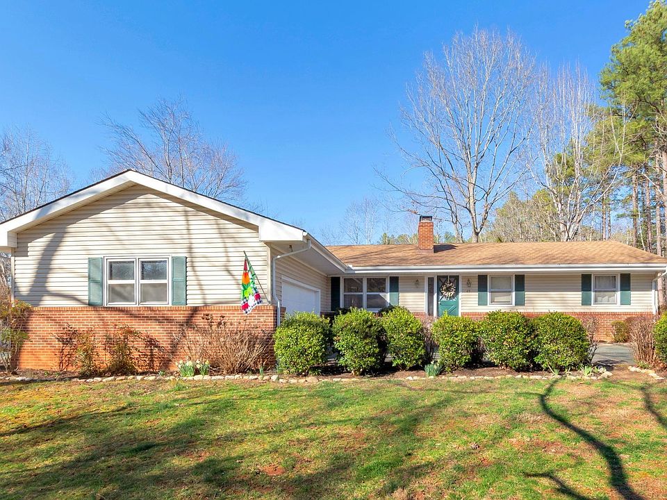 One-level ranch home located super close to the clubhouse, pool and main beach on a finished basement with a drive-through 2-car garage and a whole house generator in the amenity rich Lake Monticello neighborhood! This home is perfectly situated on a level corner lot and offers a spacious floor plan including a living room with a wood-burning fireplace, spacious kitchen with granite countertops, stainless appliances, breakfast bar and built-in desk area, conveniently located half bath, dining area open to the family room and a bedroom wing that includes the primary bedroom with attached recently fully renovated bathroom, 2 additional bedrooms and a full hall bath. The basement with updated flooring boasts a large rec room with a wood stove, exercise room which can be used as a guest room, full bath, laundry room and unfinished space for storage! Property has an invisible dog fence already installed. Lake Monticello offers the lake, a pool, clubhouse, basketball and tennis courts, 2 playgrounds, private security force and much more!