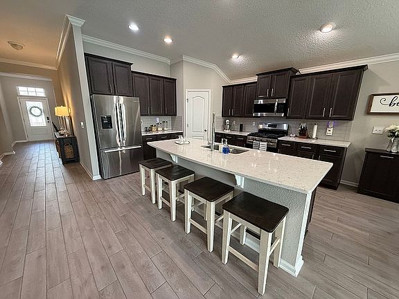 Open concept, pool home located in beautiful St. Augustine. Built in 2019, this low maintenance home features a heated salt water pool, with color changing LED lights and a spacious fenced in yard with plenty of space. The primary bedroom's bay window perfect for a relaxing sitting area is complete with pool view and plenty of closet space. The kitchen features quartz countertops, Bosch refrigerator and Bosch dishwasher replaced in September of 2023 and still under warranty. This home is a must see, offering a low HOA fee, paid off CDD bond, and much more.