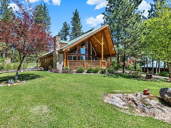 Nestled at the end of the road for ultimate privacy, this quality-built Lindal Cedar Home features log accents inside & out. T&G vaulted ceiling. Kitchen boasts large center island with granite countertops & rock flooring. A spacious loft with 1/2 bath offers flexible use as a bedroom, hobby space, or additional living area. Enjoy outdoor living on the expansive deck complete with a rock fireplace—perfect for entertaining. The property is horse-ready with fencing, paddocks, a round corral & easy access to riding trails. The detached 2-car garage includes a heated "man cave" & upstairs storage. Beautiful mature landscaping, a Rainier cherry tree, raspberry bushes & garden area create a peaceful outdoor retreat. Residents of the subdivision enjoy access to a private geothermal pool open year-round. Just minutes from Terrace Lakes Golf Resort, this home offers both recreation & relaxation in a serene setting. Don't miss this rare opportunity to own a private mountain escape with incredible amenities & charm.