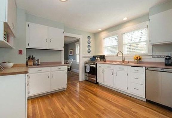 Live in this beautiful SINGLE FAMILY home just steps to the Pierce School, a short stroll to the Reservoir to swim or to Mass. Ave and the bike path enables a flexible lifestyle. A wonderful location with so much to offer! A perfect blend between meticulously preserved original character and lots of modern updates! This charmer has a fantastic "flow" including a large living room with plantation shutters and dining room perfect for entertaining. The fashioned kitchen has been tastefully updated with gas stove and stainless steel appliances. A half bath is tucked away in the corner to complete the first floor. The top level features crown molding, 3 bedrooms and a beautifully renovated bathroom with updated fixtures and subway tiles. You'll love the corner lot, garage, lovely farmer's porch, and beautiful fenced in backyard! A true oasis with loads of mature perennials and a fantastic patio area! Fabulous partial seasonal city views too. 1 Garage and 1 off st parking included.