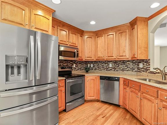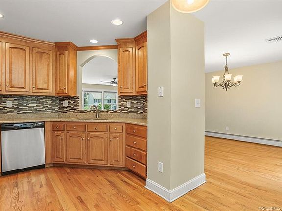 This Tashua home is conveniently located, close to schools, parks, restaurants, shopping, and highways. Sunfilled home with oak floors throughout, custom oak eat in kitchen with granite countertops and tiled backsplashes, and stainless appliances. Formal dining room with sliders to the rear deck that overlooks the private rear yard. Interior has been freshly painted. Central air conditioning throughout. Lower level can be used as a 4th bedroom or a family room. This room is equipted with a closet and a full bath. Three fully tiled baths., The master bedroom has a large fully tiled bath and whirlpool tub. Oversized two car garage, exterior is vinyl sided. The house was built in 2008.