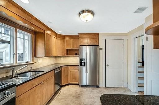 Beautifully remodeled home in an outstanding location featuring fully applianced kitchen with granite, tile backsplash, ceramic tile flooring, hood fan, recessed lights, breakfast bar, pantry closet and stainless steel appliances, dining room with hardwood and slider leading to backyard with paver patio, living room with fireplace and hardwood, huge master bedroom with double cedar closets & master bath, full bath with granite countertops, heated floors and tile surround tub/shower, lower level is finished w/ additional bedroom with impressive fireplace, beautiful 3/4 bath with tile surround walk-in shower, extra closet space, 2 car garage, intercom system,200 amp updated electrical, central vac and newer roof. Updates include new paver walkway & patio,paint, heat and central A/C, replacement windows and more!Great location close to the center of town, Belmont High School, bus line to Harvard Sq., commuter rail, parks,library, public pool, shopping,restaurants,ets. Amazing walkability!