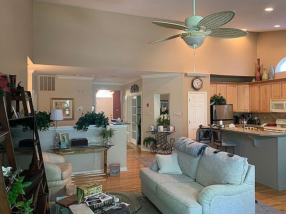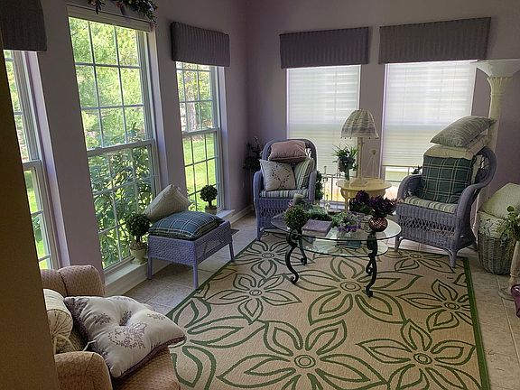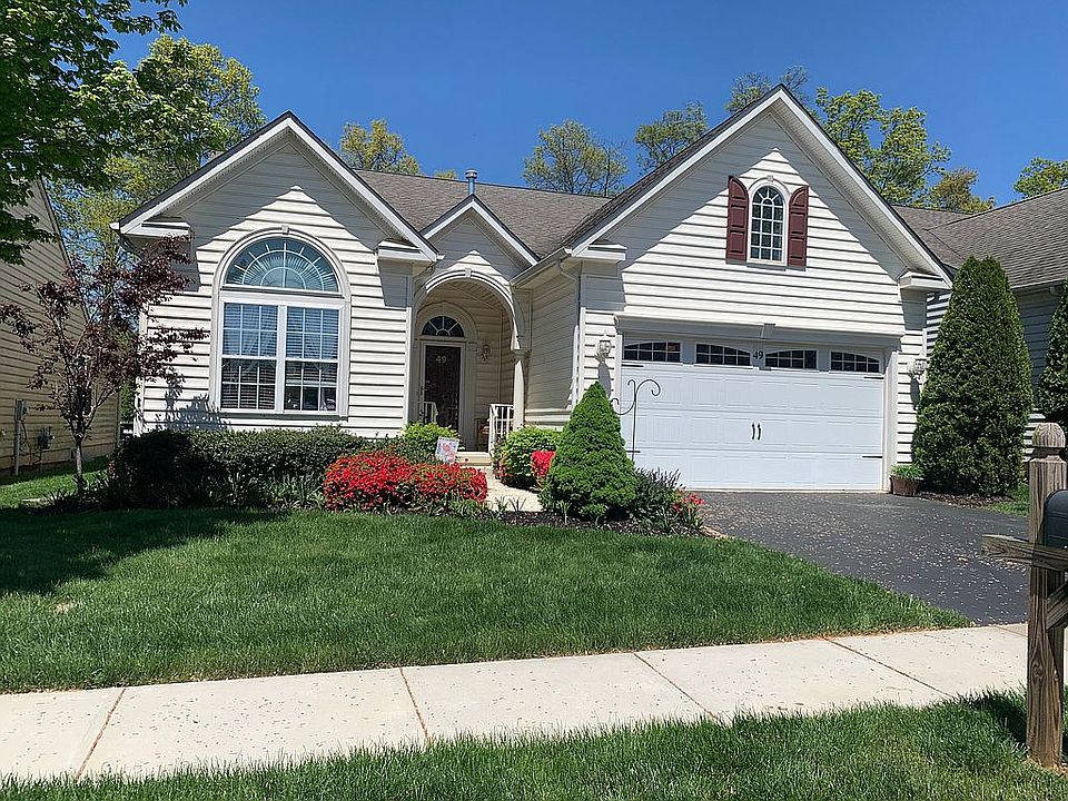 Beautifully cared for 2/3 bedroom one story ranch with sunroom and office/library. Large crown molding throughout open floor plan. 350 sq ft private deck adjacent to protected land. Full basement with billiard table and plenty of unfinished storage and potential to add square footage. Located in highly desired HearthStone, an active 55 and older, community with access to clubhouse and pool.