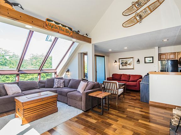 This spacious 4 bedroom, 3 bath, ski-in ski-out, multi-level condo has been tastefully renovated. This end unit has excellent rental potential! The vaulted ceilings and huge windows brighten the open concept living, dining, and kitchen areas. There is a wood-burning fireplace, new hardwood floors, and several seating areas including a deck allowing you to spread out or host large gatherings. This main level also includes a generous sized bedroom and a ¾ bath with marble countertops. The master suite on the upper level has high ceilings, a whole house fan, new carpeting, a deck, and a renovated bath with marble floors and spacious shower. The tiled entryway has a long bench, closet, a gear storage room with built-in cubbies and just outside is a deck with additional seating which gives plenty of space to transition in and out for daily activities. The lower level has new carpeting, a washer & dryer, roomy updated full bath with sauna and two additional bedrooms. Additionally, there is a basement storage room and a large storage room on the way up to the master suite. There are seasonal views of bear mountain and long-range mountain views. Sunrise has a top-notch health-club with indoor and outdoor pools, a covered year-round outdoor hot tub, indoor hot tub, large gym, sauna, steam room, tennis court, ice skating pond, snow shoe trails, seasonal restaurant, and more. Create a lifetime of memories with everything you need at your doorstep! Showings start July 16th.