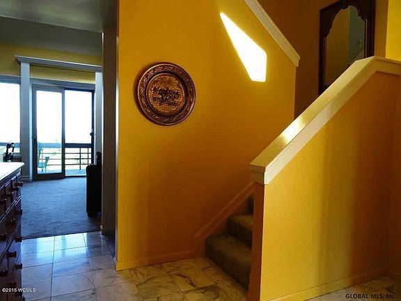 Lake View 3BR/3b townhouse overlooking Lake George & forever wild area. The great room is freshly painted & has new carpet plus a stone fireplace. Enjoy dining al fresca on the spacious deck overlooking mountains & lake. The bright, white kitchen w/marble floors & a breakfast bar opens to the great room & has a spacious loft overhead. Main level bedroom & full bath. Above grade, ower level includes master w/California closets, marble bath w/whirlpool & private deck & a guest BR+bath. 2013 propane furnace & AC compressor. Most furnishings included. HOA includes club house, indoor & outdoor pools, tennis, weight room. Custom Kitchen Feature