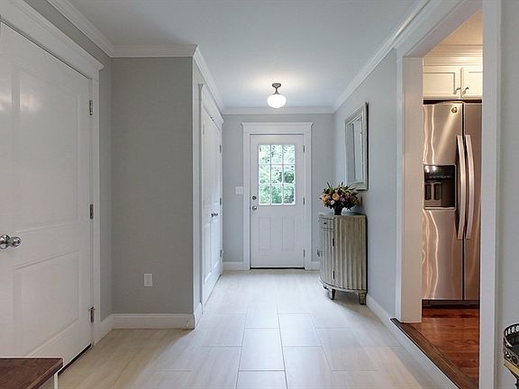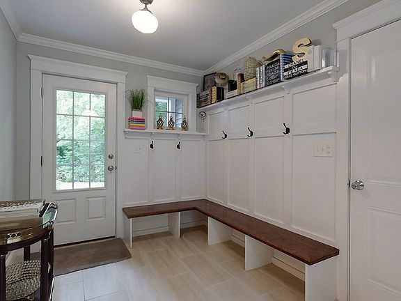 Welcome home to this charming Cape. Through the garage, enter into a spacious Mudroom, featuring a built-in bench with open storage, and a stylish shadowbox wall with hooks – perfect for all your outdoor gear. Gleaming hardwood floors lead you to an open-concept Dining Room and Kitchen, adorned with wainscoting, a center island with seating, and plenty of white cabinetry, including a floor-to-ceiling pantry and stainless steel appliances. The front-to-back Living Room, filled with natural light and warmed by a wood stove, offers ample space for both relaxation and entertaining, with a large glass slider opening to a back deck. The main level also includes a 1/2 Bath with Laundry. Upstairs, you'll find 3 Bedrooms and a Full Bath. Outside, enjoy a private backyard with a deck and garden areas tucked away in the side yard. Beautifully updated and move-in ready, this home is set back off Rt 113 yet close to town, and it even has central AC for your comfort.