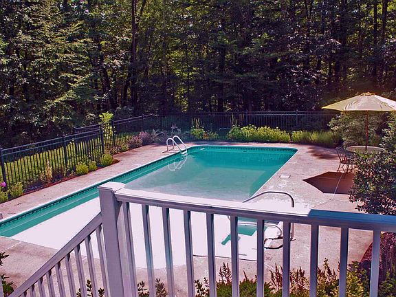Built in 2002 and sited on almost 7 acres, this home is quietly tucked at the end of a private road and surrounded by conservation land, loffering a feeling of open space with added privacy. Inside this 3/4 bedroom colonial, the first floor boasts a floor plan for easy living and entertaining with an eat-in-kitchen featuring a large center island and breakfast nook with French door to an outdoor deck. A large family room with vaulted ceiling and wood-burning fireplace, formal living and dining rooms, powder room, mudroom/laundry round out the main floor. All the bedrooms are located on the second floor. Master suite features two closets and a luxurious bath, complete with custom built-in cabinets/vanity and a claw foot soaking tub. A perfect way to end your day. Two additional bedrooms and a second full bath. The 4th bedroom/bonus room is accessed via the master bedroom. Currently used as an office. Outside, you'll enjoy a peaceful, park-like yard with a heated, in-ground, salt water pool surrounded by lush plantings. Rockland Preserve with hiking trails and Pond are nearby. Did I mention the chicken coop? Come see... you won't be disappointed.