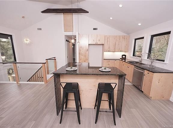 Simply step inside this 3 bedroom and 3 bath home to find everything New & Improved. The interior living space offers vaulted ceilings in upstairs living space & kitchen, brushed bamboo flooring throughout, custom designed & built floating stairs in entryway. Enjoy the remodeled kitchen with granite, cabinets, dishwasher, sink, garbage disposal and induction stove. Throughout enlarged living spaces are new windows/doors, new lighting and HVAC system. Remodeled bathrooms have new: toilets, vanities, tile and mirrors. The outisde has new roof, rain gutters, paint, deck & stairs (front and back), garage doors/door openers along with expanding the garage to accommodate 2 cars and new exterior lighting. A new Radon System was installed, most plumbing replaced and an electrical rewire. Green/environmentally friendly products have been used wherever possible. Located only 5 minutes drive to Beaver Lake's nature trails and 6 minutes south to Chestnut Ridge Trail at UNCA. Virtual tour attached.