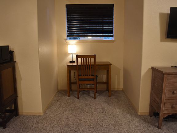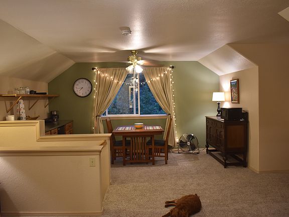 Our home is on an acre, surrounded by trees. The yard is beautifully landscaped, and there is a year-round creek bordering the property in the back. While we are close to town, it feels like we are secluded in our own private retreat. You would be invited to enjoy the back deck and patio in the spring, summer and fall, use the grill if you would like, and join us around the fire pit on cool evenings. Sitting by the creek to read and reflect is a favorite pastime, or on those few really hot days in the summer, you might choose to sit IN the creek. You have the entire upstairs. Our home is on the main floor, and the studio is upstairs with its own kitchenette, closet, full bathroom, small fridge, couch, tv, bed and dining table. The unit is completely furnished with basic kitchen essentials provided. It is appx. 450 sq. ft. The studio has three large windows that let in plenty of light, looking out onto the back and side yards. The laundry room is at the bottom of the stairs. The washer and dryer are available for your use. Due to limitations in parking and our septic system near the creek, the studio is only able to accommodate one person. All utility costs are included in the monthly rent. All utilities are included and fast internet. One month minimum lease. No smoking or drugs. There is off-street parking on site. We take care of snow removal.
