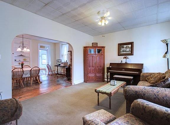 Own a piece of history in this spacious home located in the heart of Alburtis. Upon entry you will notice the high ceilings, deep windowsills and wide planked floors in the living and dining rooms. The dining room retains it's period features with several built in cabinets and has had a wood burning stove and hearth perfectly placed in the corner. Owners have maintained and updated this home to include a bright and open first floor recreation room that leads to spacious deck overlooking the backyard. Kitchen has been updated and is large enough for table and has pass through to recreation room. Upstairs you will find three bedrooms and full bath, and the finished third floor for additional bedroom. Roof less than 10 years old, oil burner installed in 98-99 has been serviced every year. There is 2 car parking in rear. Conveniently located close to schools, restaurants, Lockridge Park, and Bear Creek.