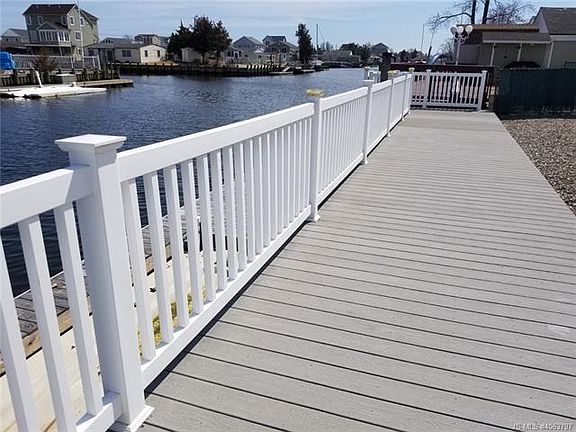 Picture perfect raised ranch on piling with enclosed oversized two car garage and three fiberglass garage doors plus side direct access door. This home is a head turner for sure, you'll definitely take a double take once you see the fresh look of the exterior decorative scalloped gingerbread peaks front & rear. Vinyl bulkhead, dock ramp to 20 feet of floating dock. Easy maintenance upper level wrap around vinyl decking & the lower level 50 foot vinyl dock are complete with white vinyl railings. Original owners had built for them selves & shows pride of ownership. The Open bright & airy living concept features vaulted ceilings & molding. Kitchen offers 42 inch cabinets with decorative molding, center Island offers great work space & entertaining your favorite displays. Stainless steel appliances including ss double bowl sink w/GD, microwave above the stove. Two sliding glass doors off kitchen & living rooms with direct access to 30 foot vinyl deck , enjoy the sights of the boaters pass-ing by take in the cool breezes the sweet smell of the salt air and lay back on your lounge chair kick up your feet and live the life. Both bath rooms have one piece shower unit. Large laundry room with ample storage space. Pull down stair to full attic with flooring for additional storage. 200 amp electrical service box with addition service box in garage. 10 year Home Owners Warranty is transferable to new owner.