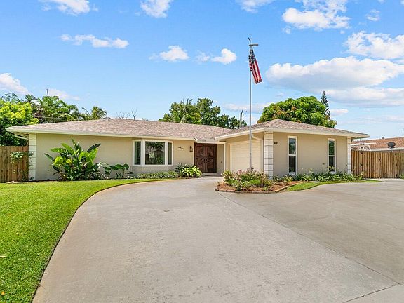 Beautifully maintained and updated 3 bdrm/2 bath CBS home, in the highly sought after FLORIDA GARDENS neighborhood! NO HOA! NEW ROOF 12/2016, PGT impact windows and doors through-out in 2020, updated open concept kitchen w/large island, quartzite countertops, and a butler's pantry in the dining room! Living room has gorgeous custom built-in bookcases with an electric fireplace. Bamboo flooring through-out most of the living areas. Split bedrooms! Spacious master with his/her closets and updated bathroom w/multi jet shower. The backyard is an amazing tropical oasis, perfect for relaxing and/or entertaining on the brick paver patio with the tranquil pond/waterfall, surrounded by a wood privacy fence. Large storage shed with electric, insulation and locking cabinets.