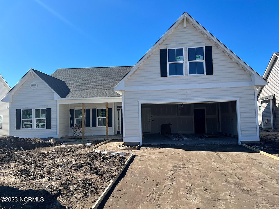 Welcome to Bridgewater Landing, the latest Logan Homes Signature Community located in Hampstead, NC. Nestled in this beautiful new community, you will find the 3bd/3bth Greenfield with added Loft room including full bath awaiting you. This is a spacious Carolina-style home features an open floor plan with 3bds/3bath on the main level and loft with additional storage upstairs. The open living area showcases vaulted ceilings and a fireplace open to kitchen with large island, pantry, and breakfast area. A stately master suite with trey ceilings, is tucked in the back of the house offering privacy. The master bathroom features large tiled walk in shower, dual vanities, and large generous walk-in closet. Upstairs you will find the finished loft which can be used as a fourth bedroom, has a large walk-in closet and it's own bath. On the other side of the stairs there is an additional unfinished bonus room which is great for storage, or could be finished later by buyer as another 5th room! This ranch plan offers wonderful living space with mostly one level living.