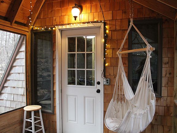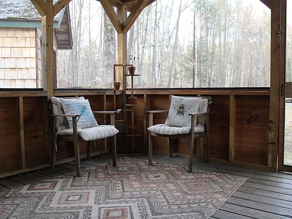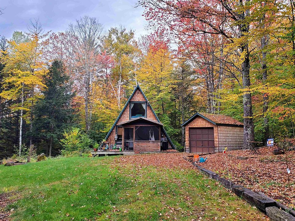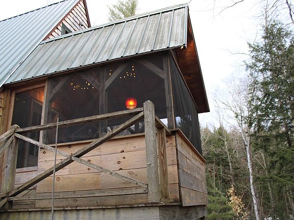 PRIVATE WEEKEND GETAWAY- Charming and well-maintained 2 bedroom, 1 bath 850sqft A-Frame on 10 secluded, wooded acres. Amazing opportunity for a remote weekend retreat in the Vermont countryside or a practical starter home with school choice. The home offers additional living space with two screened porches (front and back). Perfect for three season dining, relaxing, working or just enjoying the natural surroundings. The main level of the home features a quaint kitchen, three quarter bath and a large living/ dining space, flanked on each end by the screened porches and an open air deck. Upstairs are two bedrooms with a lovely picture window and tons of natural light. There is a shed/garage with plenty of storage space for snow mobiles, 4 wheelers or other recreational toys like skis and kayaks. The property even includes a Vernal Pool in the spring. Endless access to gorgeous hiking, biking, and skiing while still being 10 minute drive to South Royalton/ Vermont Law School and 40 minutes drive to Dartmouth College or DHMC.