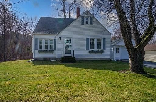 This charming Cape Cod style home offers a remodeled Kitchen with ample cabinets, new granite countertops, tiled backsplash, stainless steel appliances, vinyl plank flooring, new light fixtures and a nice sized dining area. The large living room with a beautiful bay window has lots of natural sunlight, a wood burning fireplace and gleaming hardwood floors. Both bedrooms on 1st floor have hardwood flooring and crown molding. The 2nd floor offers a Nice sized bedroom and large family/game room. (Pool table negotiable) Storage in the attic eaves. The roof is less than 10 years old. Most all of the windows were recently replaced with Harvey windows, new exterior door, newer storm doors and newer driveway. The walk out basement offers lots of storage shelving, a workbench and built-in cabinets. Enjoy the 3-season sunporch that overlooks the large flat yard. The covered breezeway is a nice entry into the home. Highest and Best offer by 3/29 at 2:00pm.