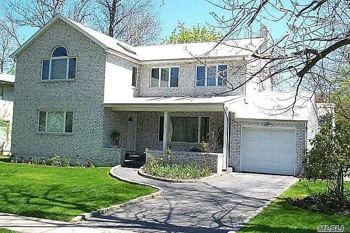 Mag Brick Colonial set on 7600 SqFt Prop.Lite and Brite,This 4 Bd,2 Full and 2 1/2 Bth house has it all! The wooden staircase floats up to the 2nd fl and down to the finished Bsmt. 2nd Fl has Huge Cath Mastr Suite with large custom Bth,plus 2 more Bd and 1 Full bath. 1st Fl has addditional bedroom and 1/2bth,Large Den,LR,DR and EIK complete this lovely home.Baker Ele,North Middle and High.Spec Feat: Lalique Type Glass Panels, Wood Floors,Updated Windows and Baths,CAC,Gas Heat. LIRR Park Permit.