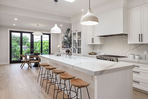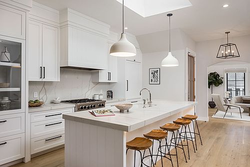Blue star rangeEnsuite bathroomThoughtful designOversized windowsDry saunaCustom cabinetrySpacious island