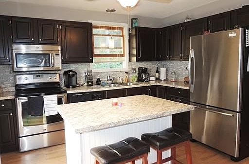 Don't miss out on this charming, three bedroom cape located in Indian Orchard! Spacious open floor plan with hardwood flooring, which includes a remodeled kitchen, dining room and living room with a wood burning stove for those colder days! Wall to wall carpets in all bedrooms. Master bedroom and half bath located on the first floor. Bonus rooms in the partially finished basement with washer and dryer hookup. Large backyard with plenty of room for kids to play or family gatherings. Very well maintained, with newer roof and siding!