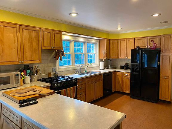 Expanded cape at the end of a quiet cul de sac with a babbling brook beyond the fence bordering property. Enormous kitchen with large eat in area and sliders to a vast two-tier deck overlooking the fenced rear yard. Formal dining room. A full bath on each floor. Large living room with working woodburning fireplace. Two good sized bedrooms with closet space that would be generous for a home twice the size! Extremely convenient proximity to Vassar, parks, highways, and all local amenities. Other features include an alarm system, full basement, and shed. Fantastic lifestyle at this price point! Marvelous set up for entertaining, outdoor recreation, barbecuing, or a quiet night in front of the fireplace.