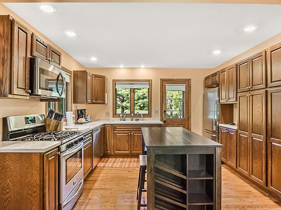 Gas fpWalk-in closetPrivate bathroom with skylightSpacious dining areaVaulted ceilingsCorian topsEfficient wood burning stove
