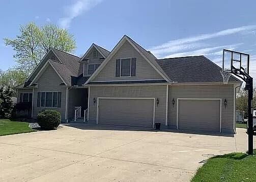 a retractable awning. The basement has high ceilings, is roughed in for a bathroom and the house is plumbed with modern PEX plumbing. You will also find a wood burning stove in the basement.. The 3 car garage is insulated and has hot and cold water inside.