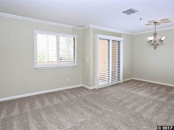 Beautiful Siena Hills Condo   One Bedroom ; One Bathroom ; Carport ; Approximately 657 sq;ft   This updated condo has a private balcony with amazing views of Mt Diablo. The home features newer carpet and paint, crown molding, and plantation shutters throughout.   The updated kitchen has white cabinets, engineered hardwood flooring, slab granite counter tops with bar seating, and stainless steel appliances.    The master bedroom has crown molding, plantation shutters, and a large closet with mirrored doors and extra shelving.   The bathroom has been updated with a vanity with granite counter tops and the tub has a glass enclosure. There is also a laundry room with cabinets and a full size washer and dryer.   The HOA dues include: pool, spa, exercise room, security gate, water and trash.   Don't miss this wonderful condo in a great location. Close to top-rated schools, parks, shopping and freeway access.