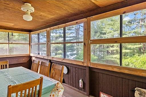 Rare opportunity awaits you- drive down your private driveway and you will find your retreat with 1500 feet of lake frontage on a peninsula surrounded on three sides by water, private beach and dock. Imagine your family and friends enjoying all Quaddick Reservoir has to offer while you work from home. Enjoy your morning coffee sitting on your sandy beach looking out on the tranquil water. This is a unique waterfront find on fully recreational Quaddick Reservoir, enjoy swimming, kayaking, canoeing, waterskiing and fishing. Property offers flat yard where you can launch your boat (s), firepit area as well as a large deck at the beach. Prime location for commuting, approx. an hour to Boston, Hartford and Providence. Large open concept home, vaulted ceilings and sky lights with central air, hardwood flooring, walk out finished lower level with full bathroom. New roof , freshly painted exterior, large screened porch for added entertainment space. A dream retreat