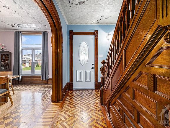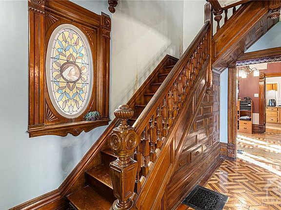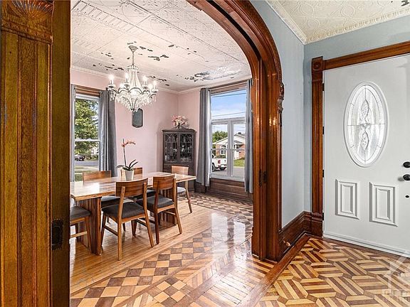 Enchanting 3-storey Victorian home brimming w/country charm & rich in character. Step inside to be greeted by impressive original woodwork, spectacular stained glass windows, breathtaking staircase & stunning cherry, birch & walnut hdwd flrs. The intricate moldings & pocket doors further highlight the home's timeless elegance & craftsmanship. The main flr boasts 9ft ceilings, a spacious living & dining areas, perfect for entertaining & family gatherings, while the delightful kitchen seamlessly blends classic design w/rustic appeal. Ascend to the upper flrs where you will find 4 bedrms each exuding unique charm & ample natural light additional living spaces ideal for creating a cozy reading nook, home office or play area. The unfinished lower lvl offers ample storage, laundry rm & large open space. With its blend of historical charm & modern amenities, this Victorian gem is country living at it's finest.