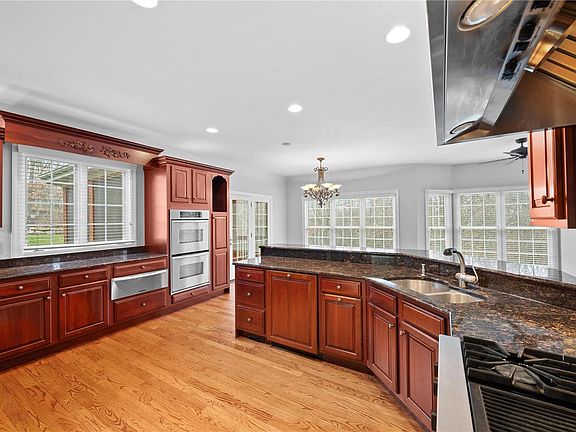 This gorgeous custom built 1.5 sty w/ a wooded lot is not just a great home but a lifestyle of resort-like living in Lake St. Louis & just down the street from the Lake Forest Country Club! You will be impressed w/ the elegant style & upgrades. Upon entering the brick & stone porch w/ a custom glass front door leads to a stately two-story great rm w/ a stunning see thru fireplace & decorative windows overlooking the peaceful wooded backyard. The very spacious kitchen has custom cabinets, Viking cooktop & hood, double ovens & hard surface counter tops. The breakfast bar opens to a hearth rm w/ bay window, breakfast rm & a large screened in covered deck. The owner’s suite is on the main floor w/a luxury bath. A spacious laundry rm & oversize 3 car garage is 28 ft deep & over 40 ft wide! The upstairs has 3 addl beds w/a private bath & a Jack & Jill bath. The walkout LL includes a 5th bedroom, bath, custom office, a pool table rm surrounded by decorative brick walls & a custom bar.
