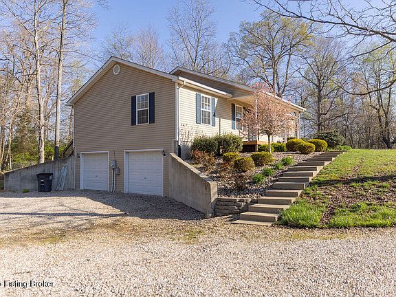 UPDATE, new roof put on today! 6/2/2025 MOTIVATED SELLER! Welcome to your tranquil retreat in beautiful Brandenburg, KY! Nestled on a little over 1-acre lot in a quiet cul-de-sac, this charming property offers a perfect blend of country living and modern convenience, being about 4 miles from town. You'll also enjoy surrounding wildlife leisurely strolling through your large yard with plenty of space for a garden in a peaceful neighborhood. Step inside to discover a large living room area, three spacious bedrooms and two full baths, providing ample room for family and guests. The heart of the home lies in the inviting large eat-in kitchen, featuring elegant granite countertops, subway tile backsplash, a built-in microwave, dishwasher, stove, refrigerator and a convenient laundry closet. The newly remodeled master bath boasts double-sink vanity, beautiful lighting and a generous closet, ensuring both comfort and functionality. Plus, the half-finished basement, complete with a cozy gas fireplace, presents endless possibilities for entertainment or relaxation. Let's not forget the convenience of a two-car garage to keep your vehicles protected from the elements and a small outbuilding for storage. Experience the serenity of country living while enjoying the space and amenities this lovely home has to offer. Don't miss your chance to make this house your new home! Seller will paint basement, buyer's choice of color. An appliance allowance of $2000 is included as well as a 14 month home warranty.