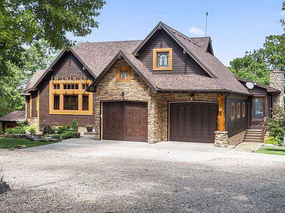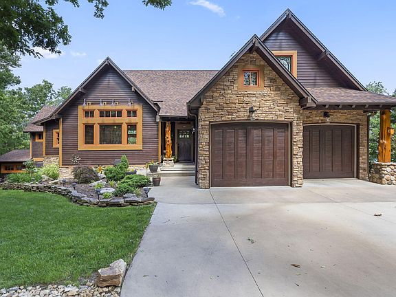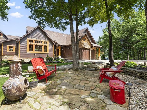 Truly one of the best lakefront lots on Table Rock Lake. No expense was spared on this one of a kind craftsman style lakefront home. From the moment you pull in the drive you are in awe of this stunning home and the beautiful landscaping. The main floor has an open kitchen, dining, and living area. This area is well planned with a 7 ft long Sugar Pine wooden island acquired from Yosemite National Park, custom cabinetry , quartz countertops, a commercial grade gas stove with griddle, drink station with bar sink, built in beverage refrigerator, ice maker, and Napoleon wood burning fireplace insert. Also on the main level is a laundry room/butlers pantry, primary bedroom with full bath, another bedroom with a built in Murphy bed, and a full guest bath. Off the living area is a a screened in patio that is just dreamy. The patio itself is 750 sq ft complete with a wood burning fireplace and incredible lake views. Downstairs has another family room, 2 bedrooms, and a full bath. Two adorable bunk rooms. One with 2 twin beds and the other with built in bunk beds. There is a large heated workshop that could easily be converted to another bedroom or a whatever you want room. There is also a room that is currently used for storage that could also be converted to a 4th bathroom. To top it all off there is a gentle meandering walking path to the lake! There is a two car oversized garage on main level with an epoxy floor and a single oversized garage on the lower level. Parking was also a consideration in the design of the home and there is ample parking for 10 vehicles. There is also a 30 amp hookup outside the downstairs garage and a 50 amp hook up off the lower deck. Furniture and decor also available to purchase. Crystal Beach is a beautiful neighborhood with a community clubhouse and swimming pool. 10x24 boat slip with lift for an additional $65K. The community boat docks are protected in a cove and have possibly the most gentle walkdown on the lake.