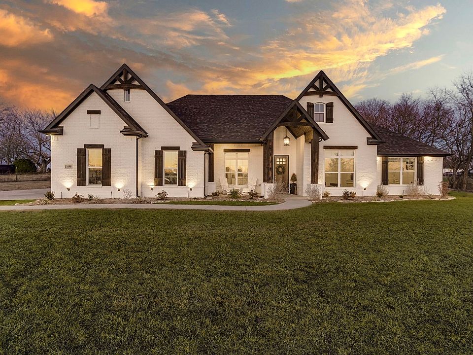 HUGE PRICE IMPROVEMENT! Transfer papers are in, this family while sad to be leaving their dream home are excited about being closer to family!!! Come fall in LOVE with this breathtaking beauty! NO HOA and NO CITY TAXES...country living is calling! Beautiful views from this modern farmhouse, which is on over an acre and nestled among other beautiful country homes and wide-open pastures. Built by Elmwood Custom Homes and features 4 bedrooms, office, media room, open floor plan, fabulous quartz kitchen island, cabinet hardware, three car garage, huge covered back patio space and a majestic entry. Some upgrades included during the build process were ceiling treatments, lighting, tankless water heater, extended patio, higher end exterior doors and windows, upgraded blinds, propane and appliances package. Pictures do not do home justice, the flow of the home is perfect for the whole family, the kitchen is amazing for the chef in the family and the yard is waiting on your dreams!