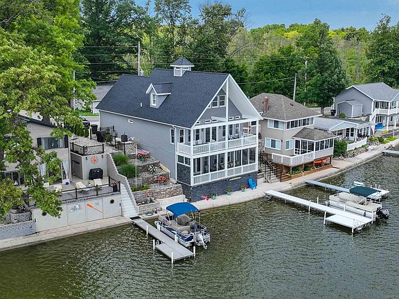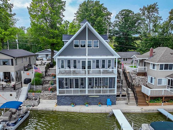 Lake front absolute showcase! This newly constructed, built in 2017, 3 bed 4 bath home features a spectacular kitchen with quartz counters and incredible views. Multiple living spaces include a large loft area with tons of room and storage and a half bath, and another on lower level with kitchenette / bar area. Spacious master with gorgeous lake views and en-suite with tiled walk in shower and large walk in closet. Plenty of room for extra guests to sleep. Outside you will find 2 patio areas that run the full width of the house, lower one is fully screened in with a gas fireplace. 2 car garage makes it easy to store all your water toys. Home is equipped with a Generac whole house generator. Pier is included. Enjoy all of the wonderful things that this home and Lake Atwood have to offer.