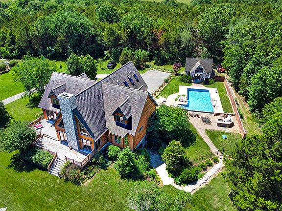Welcome to the seclusion and beauty of the country, while being just minutes from the amenities found living near the city. This impressive custom home on 6 lush acres will amaze the most particular buyer with its gorgeous hardwood floors and hand-hewn beams. A 38-foot tongue and groove wooden ceiling in the Great Room perfectly showcases the floor-to-ceiling stacked stone fireplace and tall French doors. Outside the French doors, a huge front deck overlooks the park-like front yard with a winding drive. The open floor plan and adjacent dining room can accommodate the largest family gatherings, while the stunning kitchen with Viking appliances, large island, and beautiful views will surely become a favorite gathering spot. A spacious primary suite features large windows in the bedroom and a beautiful bathroom with separate vanities with granite countertops, a soaking tub and tiled walk-in shower. The large foyer, 2-car garage (currently being used as a workout area), laundry room, powder room (and separate shower for coming in directly from the pool) complete the main floor living areas. A spectacular stairway with upper floor landing looking down on the Great Room leads to 2 ensuite bedrooms with reading nooks and seating areas and private bathrooms. A light-filled 4th BR/office with cathedral ceiling, glass doors, and a balcony completes the upstairs. Downstairs the spacious, yet cozy, basement features a full kitchen and dining area with outdoor access, a wood-burning stove in the main room, and a unique bathroom with wooden walls and ceiling and a large subway tile shower. Outside, a resort-like pool surrounded by terraced seating areas and outdoor kitchen with pizza oven and built-in grill makes you feel like you just switched to ''vacation'' mode. A lovely 2 story pool house with modern farmhouse touches has a kitchen, dining area and bathroom downstairs and the bedroom/seating area upstairs with large glass doors that open onto a balcony overlooking.