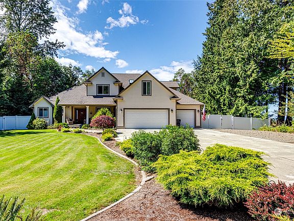 Majestic views & home overlooking the Strait of Juan de Fuca, Elwha Valley & Olympic Mountains. Blending classy & natural elements inside & out--concrete drive, patio & covered porch, hardwood floors, tall ceilings, propane fireplace & mounted TV, Corion counters, large pantry, laundry w/storage. Primary suite w/walk-in closet, jetted tub. All living could be done on the main level! Attached 3-car garage, unfinished basement for extra storage, huge bonus room upstairs, french doors to the outdoor oasis, featuring fenced viewing deck w/firepit, solar fountain, raised gardens, tree house, new shed, trailer/boat parking, generator & more! Quiet, paved, rural neighborhood, yet a quick trip to town!